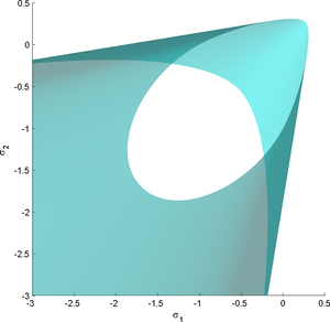 The quantities are interpreted as friction coefficients. For the yield surface to be convex, the Willam-Warnke yield criterion requires that and .