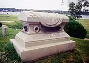 Cushing's grave is marked by a large, monumental casket made of marble, on which in relief, are Cushing's hat, sword, and coat. On one side of the stone the word "Albemarle" is cut and on the other side, "Fort Fisher".[15]