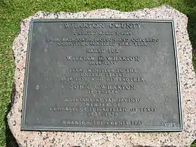Both Wharton County, Texas, and its county seat, Wharton, were named for him and his brother John Austin Wharton (1806–1838), who was likewise a statesman of the Republic of Texas.