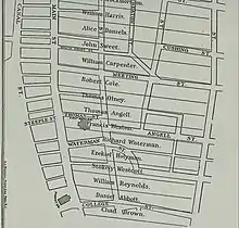 Roger Williams spent part of the winter of 1636 in Seekonk in the Plymouth Colony after he was forced to leave Salem in the Massachusetts Bay Colony, and four other men accompanied him, including Harris.[4] Later, the families of some of these men and others joined him in crossing the river to establish Providence Plantations.[5][4] Traveling with Harris were his wife Susannah and his infant son Andrew.[6] Williams wrote in 1677 that he "desired not to be troubled with English company, yet out of pity I gave leave to William Harris, then poor and destitute, to come along in my company."[7]
