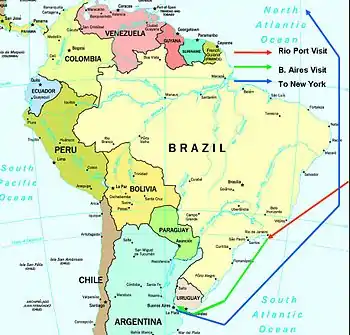 Columbus arrived at Rio de Janeiro on July 29, 1843 and spent two months in port before proceeding to Buenos Aires. It was in Buenos Aires that Parker personally met Juan Manuel de Rosas and quickly recognized him as a "cruel ruthless dictator".