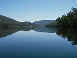 ![]() A view of Lake William Hovell, looking north towards dam wall | |