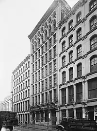 - Jayne Building, 242-44 Chestnut St., Philadelphia, PA (1849–50, demolished 1957) (completed by Thomas U. Walter).[7] Charles E. Peterson argued that Johnston's 129-foot-tall (39 m) building was a proto-skyscraper, and influenced the Chicago architect Louis Sullivan, who worked directly across the street from it in the office of Frank Furness. Peterson's efforts to save the building were unsuccessful; it was demolished in 1957 in the creation of Independence National Historical Park.[8]