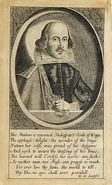 In 1640 he created the image of William Shakespeare for John Benson's (notoriously inaccurate) edition of the poet's sonnets. This was an adapted and reversed version of the original Martin Droeshout print. Five years later, he created the image of John Milton surrounded by four muses for Milton's 1645 Poems. The muses are Melpomene (tragedy), Erato, (lyric poetry), Urania, (astronomy), and Clio (history). Like Wither, Milton was unimpressed by Marshall's work, considering the portrait to be deeply unflattering. He had Marshall engrave satirical verses written in Greek underneath the image. It is assumed that this was a practical joke on Marshall, who is unlikely to have known that he was engraving insults directed at himself.[4] The verses read in translation,