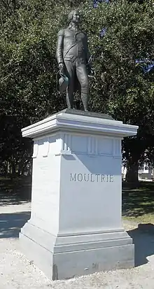 A statue of William Moultrie stands in White Point Garden in Charleston, South Carolina.