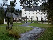 He inherited the lands of Traquair from his older brother John Stewart in 1594, and became known as "William Stewart of Traquair".[23] At the baptism of Prince Henry at Stirling Castle in August 1594 he was of the men appointed to carry the "paill", a red velvet canopy held up with four poles over Prince Henry during the ceremonies.[24]