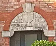 - Monk's Road Primary School, Lincoln. 1903/4 and later extended. A similar datestone to the Spring Hill School is above the gable window on this school.[40]