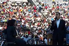 In December 2007, Barack Obama attracted approximately 29,000 attendees to a presidential primary campaign stop. Also present was his wife Michelle Obama and Oprah Winfrey.