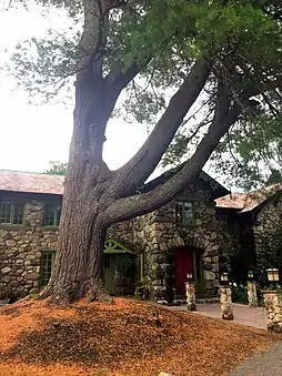 The north wing of the house was used for domestic functions, with a dining room, guest rooms, a study, and Palmer's master suite above the entrance so that he could look out at the Ipswich River. The southern wing held the carriage house and stable. The exterior of the mansion is made from fieldstone from the surrounding farms with a red-slate roof. For the interior, Cummings used primarily cherry and oak, finished with wax so that the interior maintained a natural look.[4] Construction of the mansion concluded in December 1902, having begun earlier that year.[5] The interior decoration would take a number of years to complete, however, though it was functionally done by 1904, as shown by the pictures Cummings provides in his article.[6]