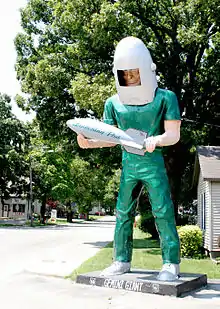 Wilmington was founded by Thomas Cox. It later became famous as a stop on U.S. Route 66, which followed the route of modern-day Illinois Route 53. The only rest-inn within the town is called "Van Duyne's" and is situated right on old Route 66. A notable attraction for travelers along this route is the "Gemini Giant" Muffler Man type statue located next to the Launching Pad fast food restaurant. Countless photos of travelers, both domestic and foreign, standing at the base of the Gemini Giant are taken each year.