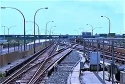 Northwest of the station is the Wilson Yard, opened in 1977, which houses the system's largest subway marshalling yard having taken over Yonge-University line operations from Davisville Yard in 1993 and a large bus garage servicing most of the bus routes in north Toronto. The original yard access tracks form part of the mainline north to Sheppard West station, crossing under the southbound lanes of Allen Road and descending, as does the road itself, down to ground level. There is a diamond crossover south of the station, widely used to reverse trains when the station was a terminus, and still frequently used for short turning.