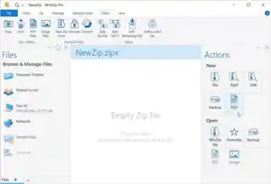 ![]() WinZip 26 running in Windows 10 with a ribbon | |