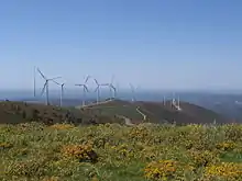 The 240 MW Alto Minho Wind Farm in the Viana do Castelo district became fully operational in November, 2008 when Portugal's Economy Minister Manuel Pinho inaugurated it.[8] At the time of completion it was Europe's largest on-shore wind farm.[9] The wind farm began generating electricity in 2007, with production increasing as more wind turbines came online, reflecting the modular nature of wind farms. The wind farm consists of 68 Enercon E-82 2MW wind turbines and 52 Enercon E-70 E4 2MW turbines, totaling 136 MW and 104 MW, respectively.[10] The wind farm will produce 552 GWh annually, avoiding 370,000 tonnes of carbon dioxide emissions.[8]