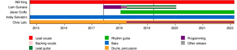 On 15 January 2018, Windwaker introduced guitarist Jesse Crofts as an official member.[13] Two days later, Guinane was officially introduced as the fifth member of the band.[14] On 2 April, the band released the single "New Infinite", the first track to feature Guinane and Crofts.[15] The band made their first festival appearance at BIGSOUND Festival in Brisbane, Queensland in September.[16]