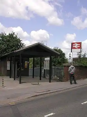 Winnersh railway station, previously known as Sindlesham and Hurst Halt and then Winnersh Halt, is a railway station located in the centre of the village of Winnersh in Berkshire, England. It is served by South Western Railway services between London Waterloo and Reading. The station is 38 miles 53 chains (62.2 km) from London Waterloo and 7.7 kilometres (4.8 mi) from Reading, at the point where the B3030 road crosses the line on an overbridge.[1]
