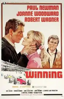 Winning is a 1969 American Panavision action drama sports film directed by James Goldstone and starring Paul Newman, Joanne Woodward and Robert Wagner. The film is about a racecar driver who aspires to win the Indianapolis 500. A number of racecar drivers and people associated with racing appear in the film, including Bobby Unser, Tony Hulman, Bobby Grim, Dan Gurney, Roger McCluskey, and Bruce Walkup.