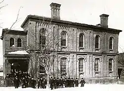 The Winslow Chemical Laboratory was a laboratory of the Rensselaer Polytechnic Institute campus in Troy, New York, United States, which finished construction in 1866.[3] It is named in honor of the 5th President of RPI, John F. Winslow, who donated half of the construction cost.[4] The building is brick with stone trimmings and was originally constructed with butternut, chestnut and black walnut. The whole building was fitted for complete courses in general and analytical chemistry. The design and construction was overseen by Professor Henry B. Nason, head of the department of chemistry at the Institute. The lower story contained the metallurgical laboratory and second story contained the chemical laboratory, store rooms and work rooms. The laboratory could accommodate about 40 students. The third story contained a lecture room, a private study, the library and a recitation room. The library of chemical books was established by a donation of several sets of journals and a gift of three hundred dollars from John F. Winslow.[3]