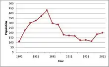 In the period 1801 to 1901 the population of Winwick was recorded every ten years by the UK census. During this time the population was in the range of 110 (the lowest was in 1801) and 431 (the highest was in 1851).[19]
