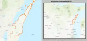 ![]() Wisconsin Senate District 1, defined in 2011 Wisc. Act 43, composed of Assembly districts 1, 2, and 3 | |||||