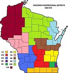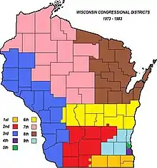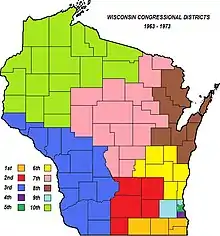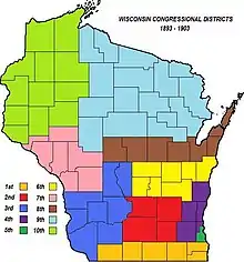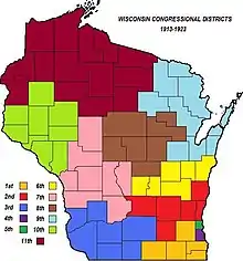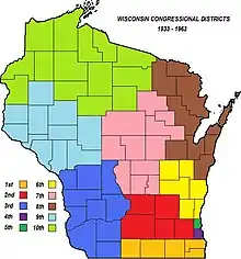 This was the first time, other than in Milwaukee County, that districts did not follow county borders throughout the state. The Town of Waupun in Fond du Lac County was included in the 2nd District. Only the five easternmost towns in Monroe County were included in the 6th District.