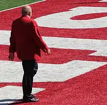 Andersen departed Wisconsin four days later, taking the vacant head coaching position at Oregon State.[9] Andersen cited family as his rationale for taking the Oregon State position; however, it was reported by some media outlets, such as Fox Sports and Sports Illustrated, that Andersen was frustrated with the University's high academic standards for athletes.[10][11] Those reports turned out to be accurate, and were confirmed by Andersen in January 2015.[12] Andersen had to pay a $3 million buyout for departing within the first two years of his contract, which was set through January 2019.[13] At the request of the teams' seniors, Barry Alvarez named himself interim coach for the 2015 Outback Bowl vs. Auburn on January 1, 2015.[14] Wisconsin won the game 34–31 in overtime.[15] Gary Andersen finished his coaching career at Wisconsin with a 19–7 record a 73 percent winning percentage with one Big Ten west division title.