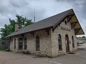 Wisconsin Dells station is an Amtrak intercity train station in Wisconsin Dells, Wisconsin, served by Amtrak's daily Empire Builder. Despite the antiquated appearance, the station was built in 1989. The station is a replica of a former Chicago, Milwaukee, St. Paul and Pacific Railroad (Milwaukee Road) depot,[2] and is in close proximity to a tourist railroad called the Riverside and Great Northern Railway. The previous station on this site was damaged by a Soo Line Railroad freight train derailing in 1982. A nonprofit group was created in the town in order to raise funds for the current station building.[3]