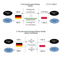 In April 2013, Wise stopped letting users purchase Bitcoin, citing pressure from banking providers.[14] Independent comparison site Monito revealed that Wise was on average 83% cheaper than the big four UK banks on major currency "routes", but could be up to 90% cheaper in certain specific cases.[15]