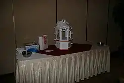 A wedding wishing well is a fancy donation box that gained popularity among bridal couples of certain countries (with one survey done in 2004 on Australia allegedly stating that up to 60% of weddings had them),[1] who have often lived together before marrying, or who have been previously married, and do not need any of the traditional wedding gifts. They are also sometimes found at showers to collect monetary gifts for the guests of honor, as well as wedding wishes or marriage quotes, poems and messages of congratulations. Wishing wells at bridal showers are popular in the NYC/NJ area. Most people bring small gifts such as spatulas or pot holders, to place in the wishing well. Wishing well gifts are in addition to gifts bought from the bride’s registry.