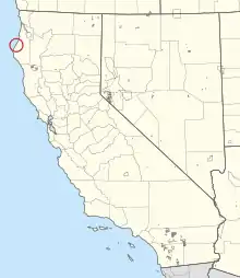 The Wiyot Tribe's land base includes two Reservations Table Bluff Reservation and the Old Table Bluff Reservation are located 16 miles southwest of Eureka, California.[8] The new Table Bluff Reservation is reservation is 88-acres large.[6] The Old Table Bluff Reservation was established in 1908, when a church donated 20 acres of land to the Wiyot Tribe. The land was allotted to individuals. The Reservation was formally recognized by the government in 1981 and 102 acres was purchased for the tribe.[5] The Reservation is located on Table Bluff in Humboldt County, California. It lies at an elevation of 236 feet (72 m).[9] The land is also known as the "Old Reservation" for the Wiyot.[10] As of the 2010 Census the population was 103.[11]