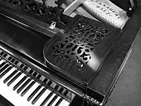 In 1866, Wm Knabe & Co. introduced their agraffe treble with agraffes threaded into a heavier piece of brass instead of directly into the iron frame.[17]