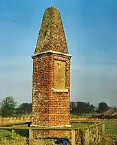 On 13 December 1795 a meteorite crashed on the outskirts of the village, landing within metres of ploughman John Shipley.[13] As a monument to this event there is a brick column bearing the inscription.[14] The meteorite is now housed in the Natural History Museum and the occurrence inspired the development of the body of science fiction literature known as the Wold Newton family by American author Philip José Farmer.[15]