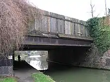 The original bridge across the Grand Union canal was built in 1834-5 (chief engineer, Robert Stephenson) and is a Grade II* listed monument.[7] The bridge is composed of numerous cast iron girders, many made by the Butterley Company Iron works. It is a rare survival since most similar bridges were removed at the end of the Victorian era. The more imposing Wolverton viaduct to the north of the old station yard is one of the most impressive viaducts on the line, and was built in 1838 across the River Ouse valley. There were many problems encountered during construction, especially landslips on the adjacent embankment. They can still be seen just south of the viaduct and were portrayed by John Cooke Bourne in his description of the railway published just after it had opened..