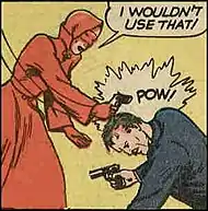 The Woman in Red is a fictional character that first appeared in the period known to comic book historians as the Golden Age of Comic Books. Created by writer Richard E. Hughes and artist George Mandel, she first appeared in Thrilling Comics #2 (March 1940), published by Nedor Comics.[1] The character was later revived by writer Alan Moore for America's Best Comics.[2] She would also be used by Dynamite Entertainment in Project Superpowers:Chapter two.[3]
