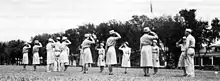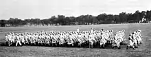 The WAAC was modeled after comparable British units, especially the ATS, which caught the attention of Army Chief of Staff George C. Marshall.[6][7] In 1942, the first contingent of 800 members of the Women's Army Auxiliary Corps began basic training at Fort Des Moines Provisional Army Officer Training School, Iowa. The women were fitted for uniforms, interviewed, assigned to companies and barracks and inoculated against disease during the first day.[8]