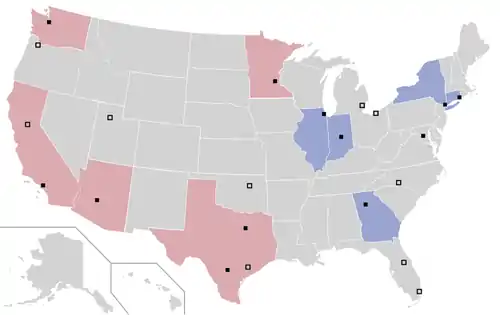 Six WNBA teams are associated with an NBA team from the same market and are known as sister teams. These teams include the Brooklyn Nets and New York Liberty, the Indiana Pacers and Fever, the Los Angeles Lakers and Sparks, the Minnesota Timberwolves and Lynx, the Phoenix Suns and Mercury, and the Washington Wizards and Mystics. Of these teams, only the Sparks have completely separate ownership. The Liberty had been associated with the New York Knicks, having been owned by the Knicks' parent company, The Madison Square Garden Company,[35][36] but the team was sold in January 2019 to a group led by Joseph Tsai, then a minority owner of the Nets[37] and now sole owner of that team.[38] Through the 2017 season, the San Antonio Spurs and Stars were also paired, but that relationship ended in October 2017 when the Stars were bought by MGM Resorts International and moved to Las Vegas.[39]