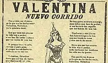 Valentina Ramirez, born in 1893 in Durango State, is known as a female fighter. In order to feel a sense of freedom, she fought in the war after her dad died. She dressed up as a male, under the name Juan Ramirez since female soldiers were not allowed directly on the battlefield.[7] Her sense of bravery and independence inspired many women to join the war. Her story inspired the creation of a corrido, “La Valentina”. In the corrido, it mentions the inequality she faced while fighting as a woman in the revolution. Her participation in the war was dismissed by the government since they did not want to recognize the efforts of women.[8] Ramirez’s bravery had earned her the nickname “Mexican Mulan” by the Mexican public.[7] Like Ramirez, many soldaderas adopted male names and wore male clothing to protect their identity. By wearing male clothing, women felt protected against sexual violence in the war.[8]
