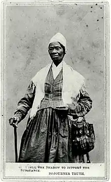 In 1851, a second Ohio Women's Rights Convention took place in Akron, Ohio[3] with Frances Gage as president.[6] Sojourner Truth was one of the speakers at the Akron convention,[3] presenting a speech, "Ain't I A Woman?".[8] Truth's words had a profound effect on the audience.[9] One of the women who was inspired by Truth was Cleveland suffragist, Caroline Severance.[10]