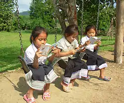 Fewer Laotian girls enroll in schools than boys.[5] After World War II, many women, such as the silk weavers of the Bai Hai population, became increasingly engaged in unskilled manual labour. Despite being less literate and educated than men on average (63% of Lao females can read and write, compared to 83% of males),[6] Lao women increasingly became the primary wage earners of their family units, especially in rural areas.