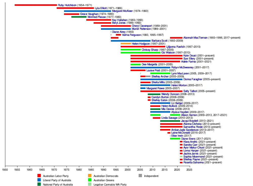 | 18 | Kate Doust | Labor | South Metropolitan | 22 May 2001 – |
