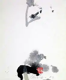 Chen Wen Hsi's presence at the start of Wong's European trip may have further honed in Wong's attention to the art of Bada Shanren; besides being influenced by Bada Shanren, Chen was a renowned collector of Chinese art that included a celebrated album of Bada Shanren.[4][45] Lotuses would enter Wong's oeuvre in this period, producing semi-abstract ink paintings such as Lotus (1965), providing Wong a vehicle through which he may more intuitively explore the relationship between Chinese ink painting and Western modernism.[46][43] Commenting on this series, Ma Peiyi wrote: