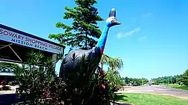 The Big Cassowary is one of Australia's big things. It is a statue of a cassowary on the south-east corner of Tully Mission Beach Road and Wongaling Beach Road (17.8975°S 146.0918°E).[25]