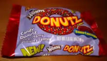 Wonka Donutz were candies sold by Nestlé under their Willy Wonka Candy Company brand. They were donut-shaped pieces of chocolate covered in sprinkles, with a truffle-like inside.[1] These were widely promoted ahead of the release of Charlie and the Chocolate Factory in 2005.[2] However, they were short-lived, and discontinued, due to low sales.[3]