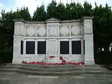 The Wood Green War Memorial is located on the High Road, Wood Green, in the London Borough of Haringey. It was erected in 1920 and paid for by public subscription of the people of Wood Green to remember the men of the area who died during the First World War. It was subsequently adapted to include the dead of the Second World War. It is grade II listed with Historic England.[1]