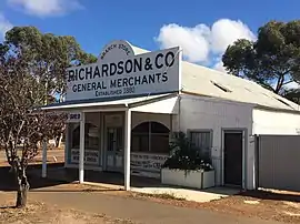 The Western Australian Bank branch and new hotel were erected in the town in 1908, along with many improvements being made to the school. Local farmers were confident of a bumper crop after experiencing favourable conditions for the year.[8] The railway station yard was upgraded later the same year, a weighbridge, new crossing, tracking yards and enlarging the current yard were all completed the following year.[9] The school changed teachers four times in 1908, with finding suitable quarters being the main problem. The school was also enlarged to cater for the growing enrolment.[10]