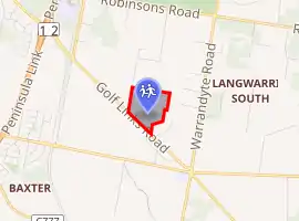In 1970, the school moved to a 3.5 ha property off Seaview Road in Frankston South (now Minimbah Court) which it named "Minimbah" – the Bunurong aboriginal word for "place of learning".[1] In 1975, it purchased the former 12.5 ha farm "Woodleigh" on Golf Links Road in Langwarrin South.[1] During this time, the Minimbah site became the junior campus and the Woodleigh site became the senior campus of the school.[1]