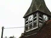 The oldest part of the Grade II* listed Manor House, southeast of the church, is a wing of a 15th-century house, built in limestone.[14] After alterations and extensions in the 16th and 18th centuries the house is mostly timber-framed under a thatched roof; nearby is a barn, late 18th century or early 19th, of similar construction.[15] Church Farmhouse, on the village street just north of the church, began as a timber-framed house in the 17th century and was rebuilt with a tile-hung upper storey.[16] Brimslade Farmhouse (16th century) is also Grade II* listed.[17]