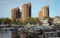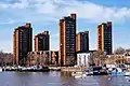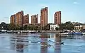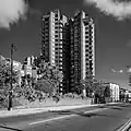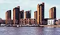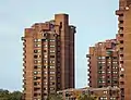 This was followed, in early 70's, by the red brick towers of the World's End estate which swept away many Victorian terraced houses.[6] The estate was designed by Jim Cadbury-Brown and Eric Lyons,[2] and is now known for its brutalist architecture.[7]