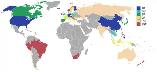 | # | Country | Winners | Runners-up | Semi-finalists | Top 4 |