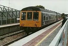 The station at Worle was developed as a joint initiative between British Rail and Avon County Council. It cost £700,000 and was built using lightweight construction materials due to being sited on marshy ground.[16] The station was opened on 24 September 1990 by Councillor Betty Perry, the chair of Avon Council.[18] The first train was a westbound Regional Railways service, operated by Class 150 Sprinter DMU 150270. All services were local ones – no scheduled intercity services would call at Worle until 2007.[16]