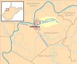 Worthington Creek is a tributary of the Little Kanawha River, 15.4 miles (24.8 km) long,[3] in western West Virginia in the United States. Via the Little Kanawha and Ohio rivers, it is part of the watershed of the Mississippi River, draining an area of 35 square miles (91 km2)[4] in the city of Parkersburg and its vicinity.
